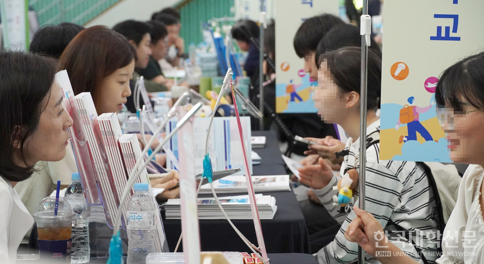 [한국대학신문 한명섭 기자] 수험생과 학부모들이 상담부스에서 입학 담당자의 설명에 진지하게 귀를 기울이며 상담하는 열기가 뜨겁다.