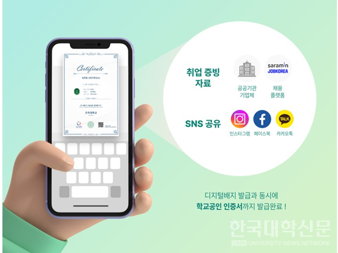 건국대 디지털배지 플랫폼은 IT 보안·인증 전문 기업 라온시큐어(대표 이순형, 이정아)의 블록체인 기술 기반 시스템 ‘옴니원 배지’를 활용해 보안성과 신뢰성을 확보했으며, 교내 서버 및 포털 인증 시스템과 연동해 개인정보 보호와 편리한 사용성을 동시에 갖췄다.