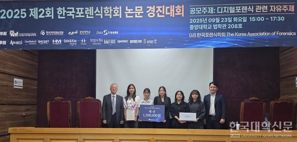 올해 경진대회는 생성형 AI와 클라우드 기술 등 고도화되는 사이버 범죄에 대응하기 위한 디지털포렌식 기술과 법 제도 연구, 그리고 전문 인력 양성을 목적으로 개최됐으며, 성신여대 연구팀을 포함해 총 6개 팀이 수상자 명단에 이름을 올렸다.