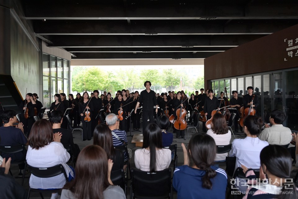 이날 무대는 관현악 전공 재학생 57명으로 구성된 CUfA 심포니 오케스트라가 참여했다. 지휘는 박영민 교수가 맡았으며, 아카데미 음악상 5회 수상 경력을 지닌 영화음악 거장 존 윌리엄스의 대표작 중 ‘미드웨이 마치’, ‘해리포터’의 환상적인 테마곡, ‘쉰들러 리스트’의 애절한 바이올린 선율, ‘스타워즈’ 시리즈의 메인 테마를 연주해 관객들을 영화 속 장면으로 이끌었다.