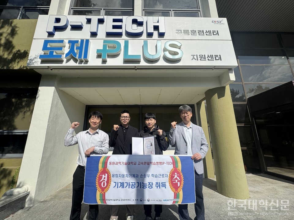 [한국대학신문 이서혜 기자] 동원과학기술대학교 고숙련일학습병행 융합자동차기계과는 최근 한국산업인력공단이 주관한 2025년 제78회 기계가공기능장 시험에서 재학생 손상우 학생이 당당히 합격했다고 밝혔다.
