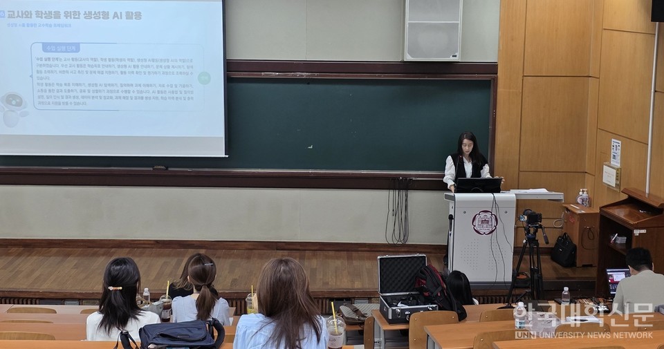 이어 사업 운영을 총괄하는 디지털교육공학센터장 박주연 교수가 1기 캠프의 정량적·정성적 성과를 발표했으며, 생생한 수업 현장을 담은 하이라이트 영상은 참석자들에게 감동과 보람을 선사했다. 또한, 전문가 특강 세션에서는 박남수 교수가 ‘생성형 AI의 교육적 활용’을 주제로 디지털 교육의 중요성과 미래 방향성을 제시해 깊은 공감을 이끌어냈다.