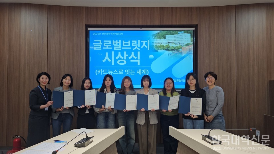 [한국대학신문 심정은 기자] 대동대학교(총장 민경화) 국제교류협력센터(센터장 남효연)는 15일 ‘Global Mind 프로그램 - 글로벌 브릿지(카드뉴스로 잇는 세계)’ 시상식을 개최했다고 밝혔다.