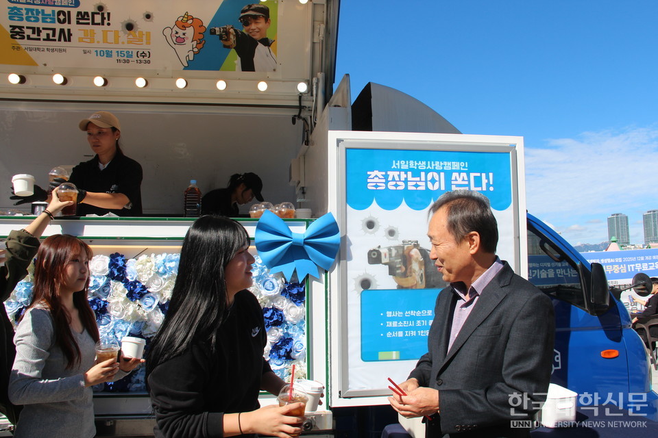 [한국대학신문 심정은 기자] 서일대학교가 중간고사를 앞두고 학업에 열중하고 있는 학생들을 격려하고 학교에 대한 사랑을 나누는 '서일학생사랑캠페인 총장님이 쏜다! 중간고사 감.다.살!' 행사를 지난 15일 성공적으로 진행했다.