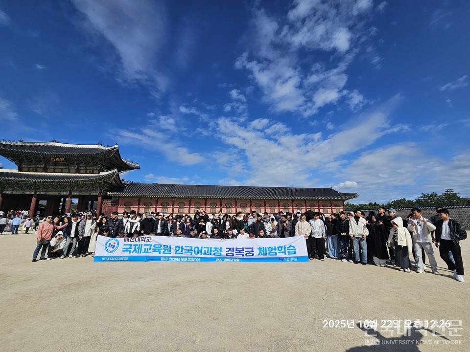 [한국대학신문 이서혜 기자] 혜전대학교(총장 이혜숙)는 22일 서울 경복궁에서 한국어 과정 외국인 유학생 227명을 대상으로 ‘2025학년도 가을학기 문화 체험학습’을 실시했다.