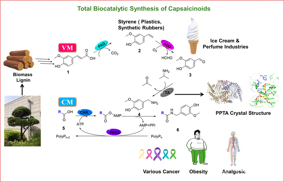 ☞ 논문 바로가기: Total Biocatalytic Synthesis of Capsaicinoids Using Ferulic Acid: A Versatile Two-Step Strategy for Natural Product Diversification (https://doi.org/10.1002/anie.202514504)