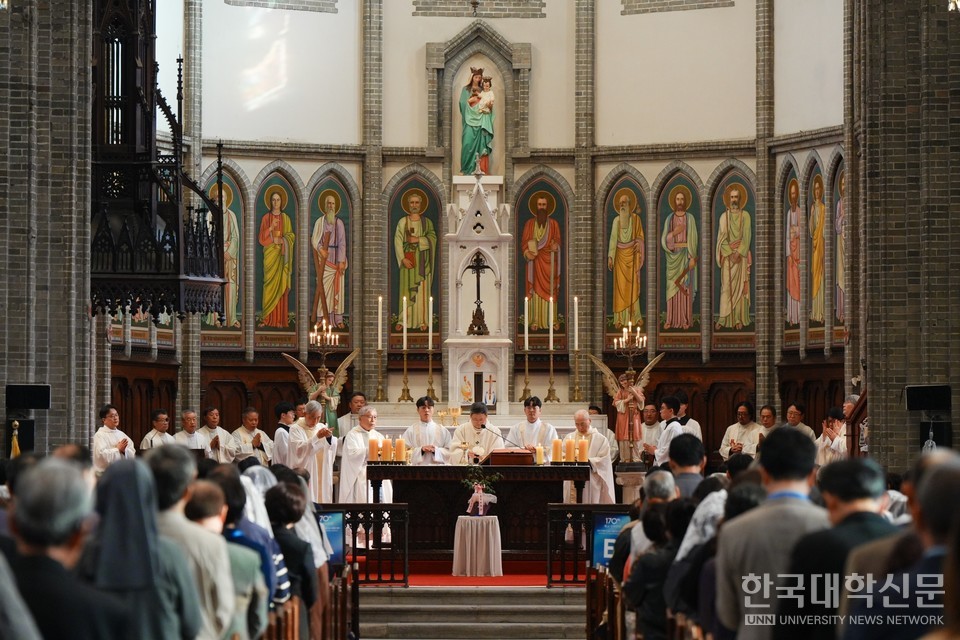 기념미사는 가톨릭학원 이사장 정순택 대주교의 주례로 명동대성당 대성전에서 봉헌됐으며, 염수정 추기경, 강우일 주교, 최준규 총장 신부 및 사제단의 공동집전으로 진행됐다.