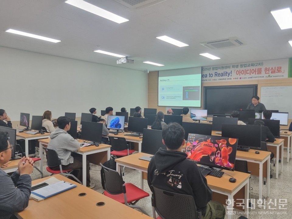 [한국대학신문 문화춘 기자] 동명대 RISE사업단(단장 이응주) 창업지원센터는 30일 교내 국제대학관에서 창업에 관심 있는 대학(원)생과 창업동아리 회원을 대상으로 ‘2025년 학생 창업교육(2차): 아이디어를 현실로!’를 진행했다. 이번 교육은 글로벌 창업역량 강화와 실무 중심의 창업준비를 지원하기 위한 심화 프로그램으로, 대학생과 유학생이 함께 참여하는 영어 강의와 지식재산권(IP) 출원을 위한 실습형 강의로 구성됐다.