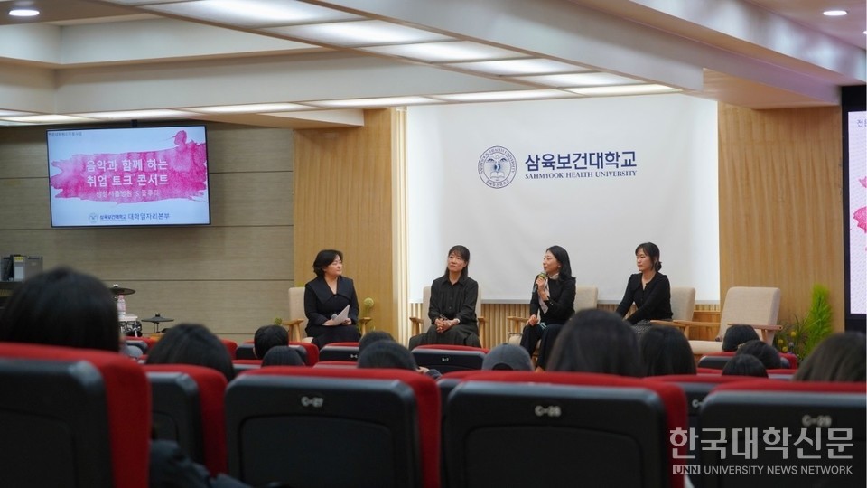 [한국대학신문 심정은 기자] 삼육보건대학교(총장 박주희)는 지난달 27일 공명기홀에서 ‘음악과 함께하는 취업 토크 콘서트’를 개최했다. 이번 행사는 음악과 진로 이야기를 결합한 새로운 형식의 진로 탐색 프로그램으로, 본교 재학생 130여 명이 참여해 큰 호응을 얻었다.