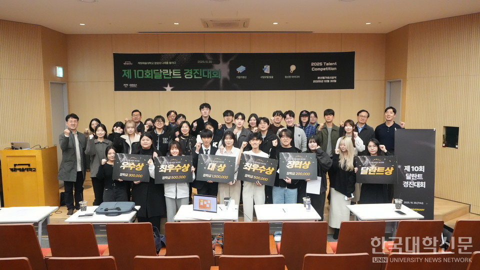 [한국대학신문 심정은 기자] 계원예술대학교(총장 김성동)는 지난달 30일 교내 다목적홀에서 ‘2025 달란트 경진대회’를 성황리에 개최했다고 밝혔다. 올해로 10회를 맞은 이번 대회는 재학생과 졸업생의 창의적 아이디어를 발굴하고 실질적인 창업 역량을 강화하기 위해 마련된 대표 창업 프로그램으로, 예비 창업가들의 뜨거운 열기 속에 진행됐다.