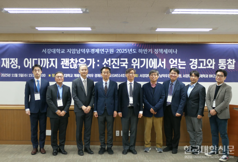 [한국대학신문 정수정 기자] 서강대학교(총장 심종혁) 지암남덕우경제연구원은 지난 5일 게페르트 남덕우경제관 514호에서 ‘한국 재정, 어디까지 괜찮은가: 선진국 위기에서 얻는 경고와 통찰’을 주제로 정책세미나를 개최했다. 이번 세미나는 프랑스와 일본의 고령화·저성장 상황 속 재정팽창과 사회적 저항 현상을 분석하며, 한국 재정정책의 지속가능성을 진단하고 정책적 대안을 모색하기 위해 마련됐다.
