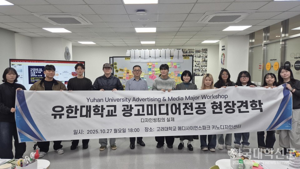 [한국대학신문 정수정 기자] 유한대학교(총장 장은영) 광고미디어전공은 지난달 27일 고려대학교 메디사이언스파크 내 키노디자인센터를 방문해 현장 탐방과 ‘디자인씽킹(Design Thinking)’ 특강을 진행했다. 이번 방문은 광고 현장에서 요구되는 실질적인 기획 역량을 강화하고, 창의적 문제 해결 방법론인 디자인씽킹에 대한 이해를 높이기 위해 마련됐다.