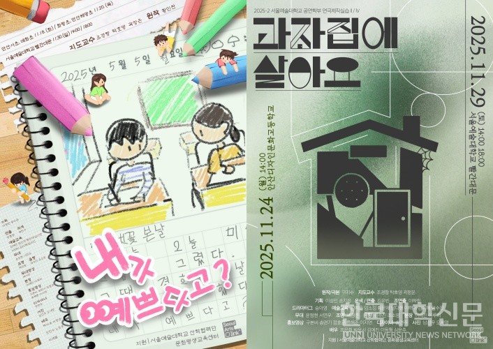 [한국대학신문 이서혜 기자] 서울예술대학교(총장 장지헌)는 오는 29일부터 30일까지 교내 ‘빨간대문’ 공연장에서 아동극 〈내가 예쁘다고?〉와 청소년극 〈과자집에 살아요〉를 선보인다. 이번 공연은 공연학부 ‘연극제작실습(캡스톤디자인)’ 수업의 결과물로, 학생들이 기획·연출·무대제작 전 과정을 직접 수행한 실습형 창작 프로젝트다.