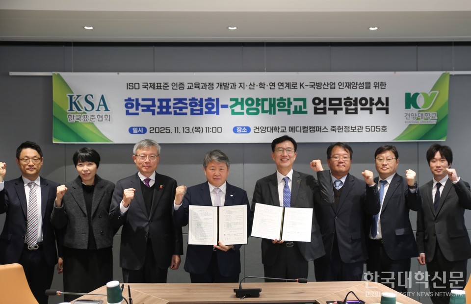 [한국대학신문 이용현 기자] 건양대학교(총장 김용하)와 한국표준협회(회장 문동민)는 급변하는 산업 환경 속에서 지역사회 발전과 국가 경쟁력 강화를 위한 뜻깊은 동행을 시작했다. 양 기관은 13일 건양대 메디컬캠퍼스에서 상호 협력 강화를 위한 업무협약(MOU)을 공식적으로 체결했다.