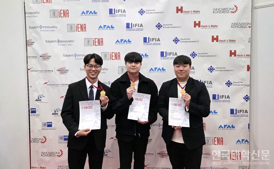 iENA 2025는 발명 분야 최대 규모 국제전시회로, 지난 1일부터 3일까지 독일 뉘른베르크(Nürnberg) 전시센터에서 열렸으며 올해 21개국에서 540여 점 이상의 발명품이 출품됐다. 수상자는 김범석, 성은총, 우찬민 학생(팀명 KIT Industry-Academic Cooperation Foundation)으로, 이들은 실내·외 환경의 제약 없이 이동이 자유로운 ‘Omni-bogie Transform Robot(전방위 보그 구조의 변형 로봇)’을 출품해 수상의 영예를 안았다.