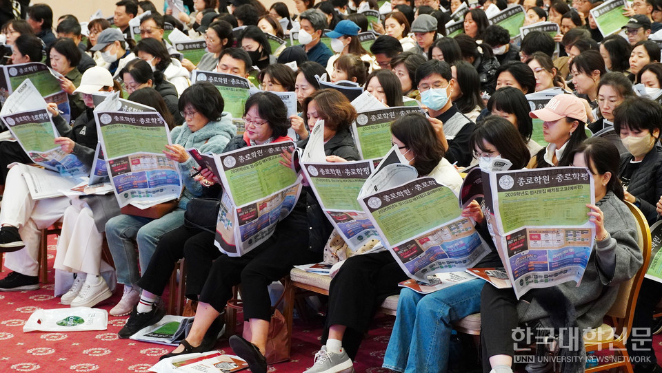 지자체나 입시학원 등이 수험생과 학부모를 대상으로 온·오프라인 설명회가 이어지는 가운데 14일 서울 세종대 컨벤션센터에서 종로학원이 개최한 '2026학년도 수능점수 분석 및 정시 합격점수예측 긴급설명회'에는 많은 학부모들이 몰려 학원측이 배포한 대학 배치표 자료를 보며 설명에 귀를 기울였다.