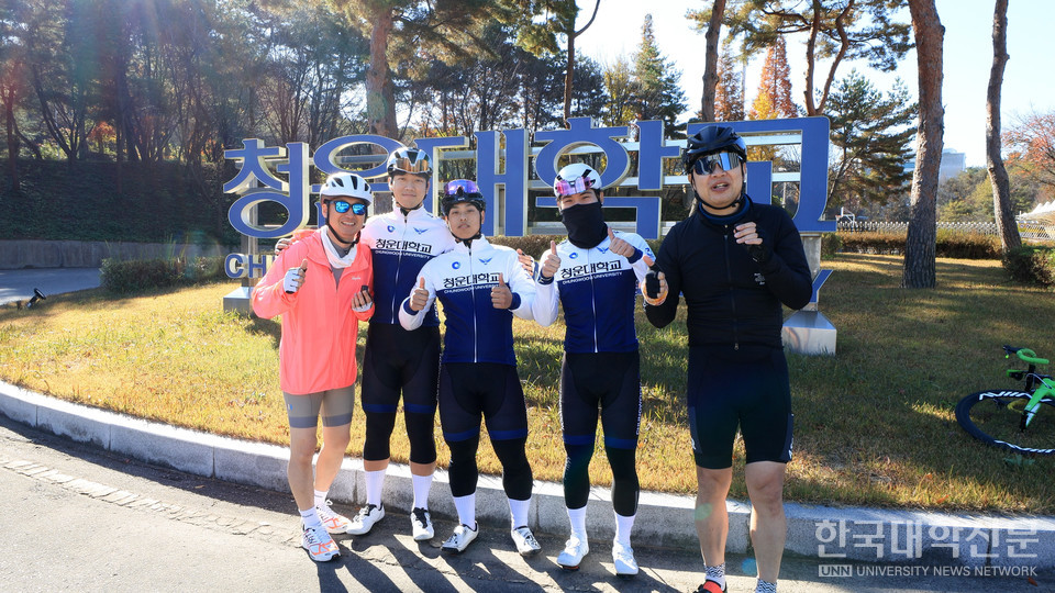 [한국대학신문 문화춘 기자] 청운대학교(총장 정윤)는 지난 17일, 구독자 11만여 명을 보유한 인기 유튜브 채널 ‘재관둥이’를 운영하는 개그맨 권재관과 홍성 출신 개그맨 조현민(홍성군 홍보대사) 그리고 청운대 사이클부 선수들이 함께 참여한 홍보 촬영을 진행했다고 밝혔다.