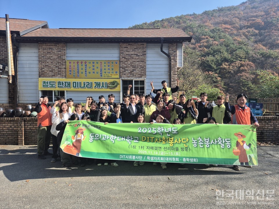 [한국대학신문 이서혜 기자] 동의과학대학교(총장 김영도) DIT사회봉사단이 지난 14일부터 15일까지 양일간 경남 양산시 원동면에 위치한 선리마을에서 농촌 봉사활동을 실시했다고 25일 밝혔다.