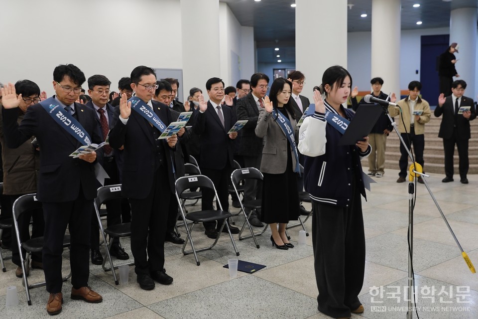 [한국대학신문 김윤미 기자] 남서울대학교(총장 윤승용)는 25일 학생복지회관에서 교직원과 재학생 100여 명이 참석한 가운데 ESG 가치 실천을 위한 ‘ESG 캠퍼스’ 선포식을 개최했다. 이번 행사는 대학이 환경(E), 사회(S), 지배구조(G)를 중심으로 지속가능한 캠퍼스 조성에 나서겠다는 공식적 의지를 밝힌 자리다.