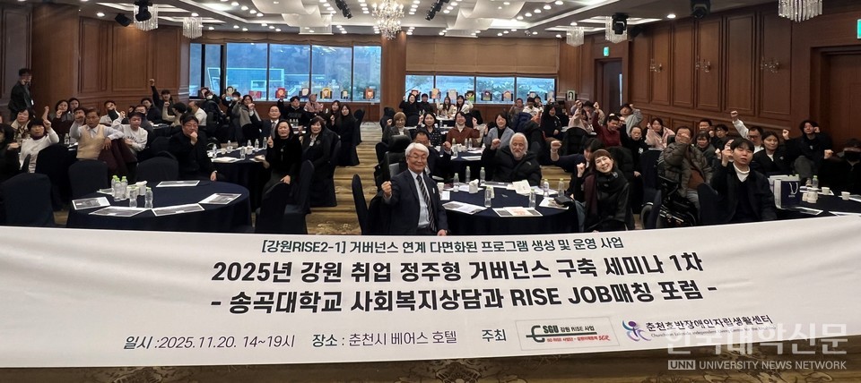 [한국대학신문 이서혜 기자] 송곡대학교(총장 왕덕양)는 사회복지상담학과 RISE JOB 매칭 포럼을 춘천호반장애인자립생활센터와 함께 지난 21일 춘천 베어스호텔에서 진행했다고 25일 밝혔다.
