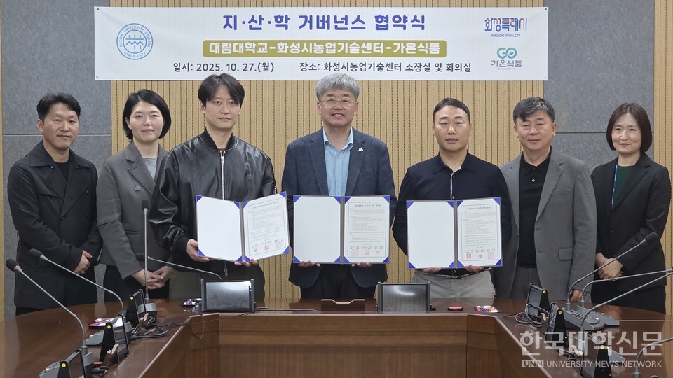 [한국대학신문 이서혜 기자] 대림대 제과제빵과는 지난달 27일 화성시 농업기술센터, 가온식품과 농산물 가공 유통 확대 및 활성화를 위한 지·산·학 거버넌스 구축을 위한 협약을 체결했다.