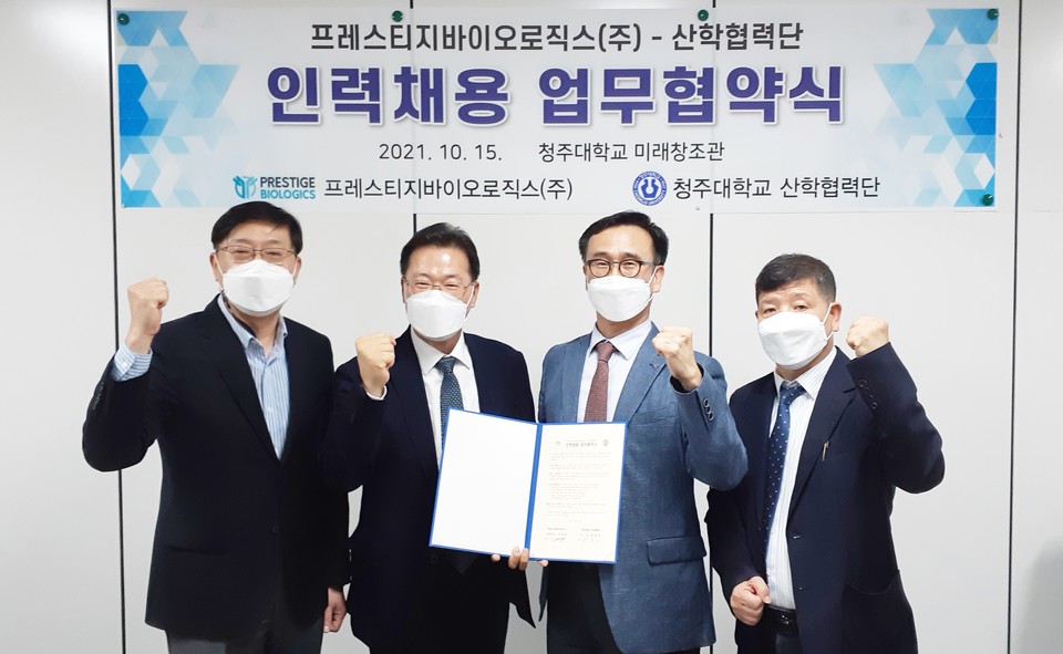 [한국대학신문 조영은 기자] 청주대학교(총장 차천수) 산학협력단이 바이오의약품 제조업체인 프레스티지바이오로직스㈜(대표이사 양재영)와 15일 협약을 체결했다고 전했다.